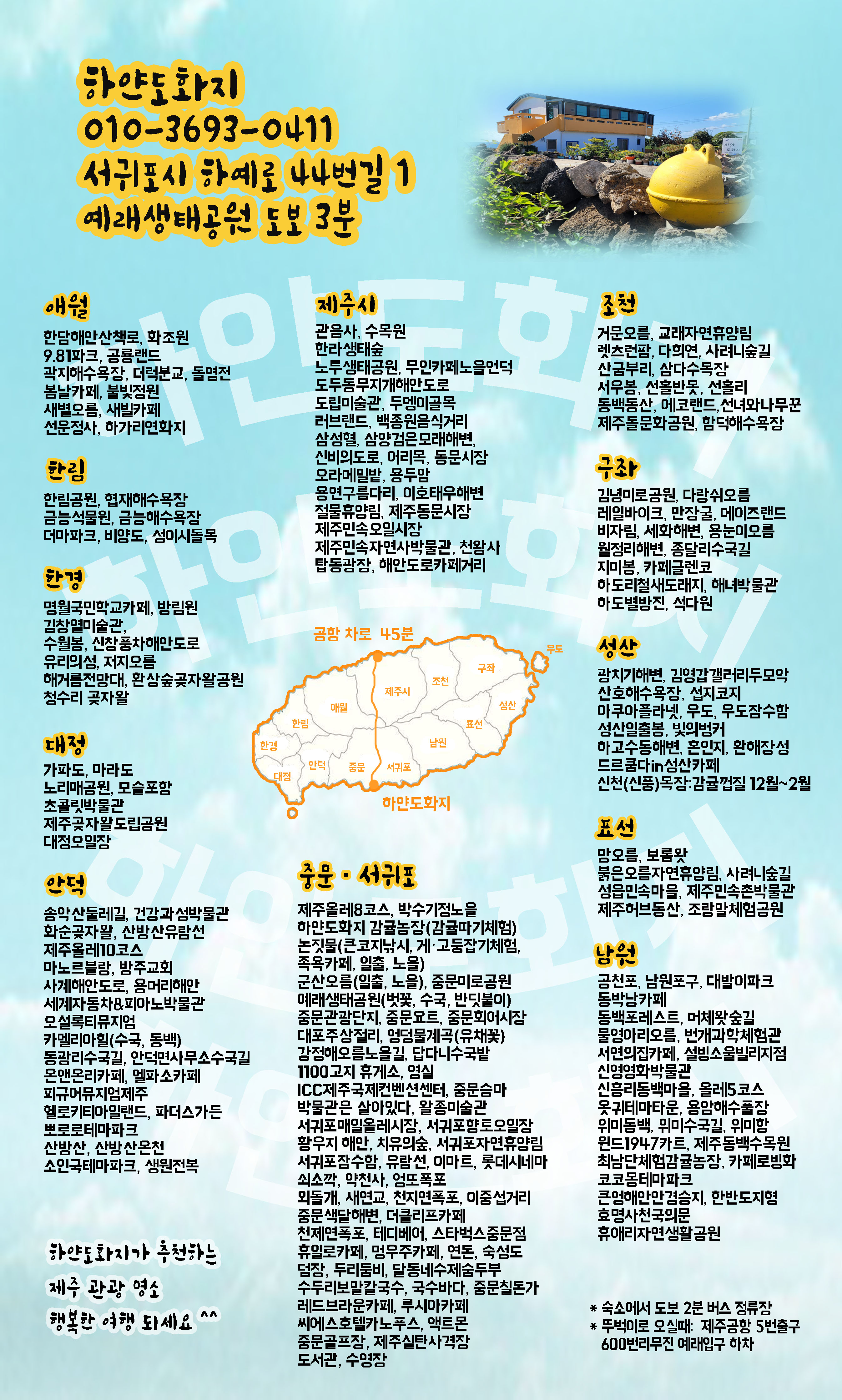 | 주소 | (697-310) 제주 서귀포시 하예로 44번길 1(하예동 54-4) |